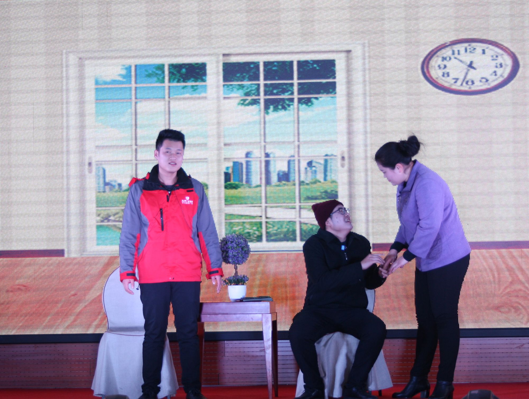 新春伊始,萬(wàn)象更新。1月13日晚,九州集團(tuán)新春文藝晚會(huì)在臨沂賓館隆重舉行。集團(tuán)領(lǐng)導(dǎo)、員工及家屬、退休職工等400余人一起觀看了文藝晚會(huì)。 文藝晚會(huì)在舞蹈《盛世歡歌》中拉開序幕。三句半《九州大發(fā)展》以膾炙人口的語(yǔ)言、環(huán)環(huán)相扣的節(jié)奏,引來現(xiàn)場(chǎng)觀眾的陣陣掌聲。小品《家庭作業(yè)》講述了兩代人通過家庭作業(yè)給父母洗腳的故事,感悟到了生活的真諦。詩(shī)朗誦《無論多遠(yuǎn),我們都在身邊》,通過起承轉(zhuǎn)合、抑揚(yáng)頓挫的朗誦向我們展示了汽貿(mào)公司一路發(fā)展的歷程,表達(dá)了對(duì)未來發(fā)展的希冀和展望。小品《快遞奇緣》訴說了九州網(wǎng)上商城配送員與顧客的奇妙緣分,折射了網(wǎng)上商城的發(fā)展為廣大市民帶來的便利。舞蹈《月光下的鳳尾竹》《我愛你中國(guó)》更是帶給了我們一場(chǎng)美妙的視覺盛宴。經(jīng)過兩個(gè)半小時(shí)異彩紛呈的節(jié)目表演,最后,晚會(huì)在熱鬧非凡的舞蹈《合家歡》中落下帷幕。 文藝晚會(huì)由各單位精心選出的的17個(gè)節(jié)目組成,節(jié)目形式多樣,內(nèi)容精彩,多角度展現(xiàn)了九州人朝氣蓬勃,奮發(fā)向上的精神風(fēng)貌,展現(xiàn)企業(yè)的新面貌、新變化,歌頌了企業(yè)的新發(fā)展、新未來。(集團(tuán)辦公室 劉傳芳)