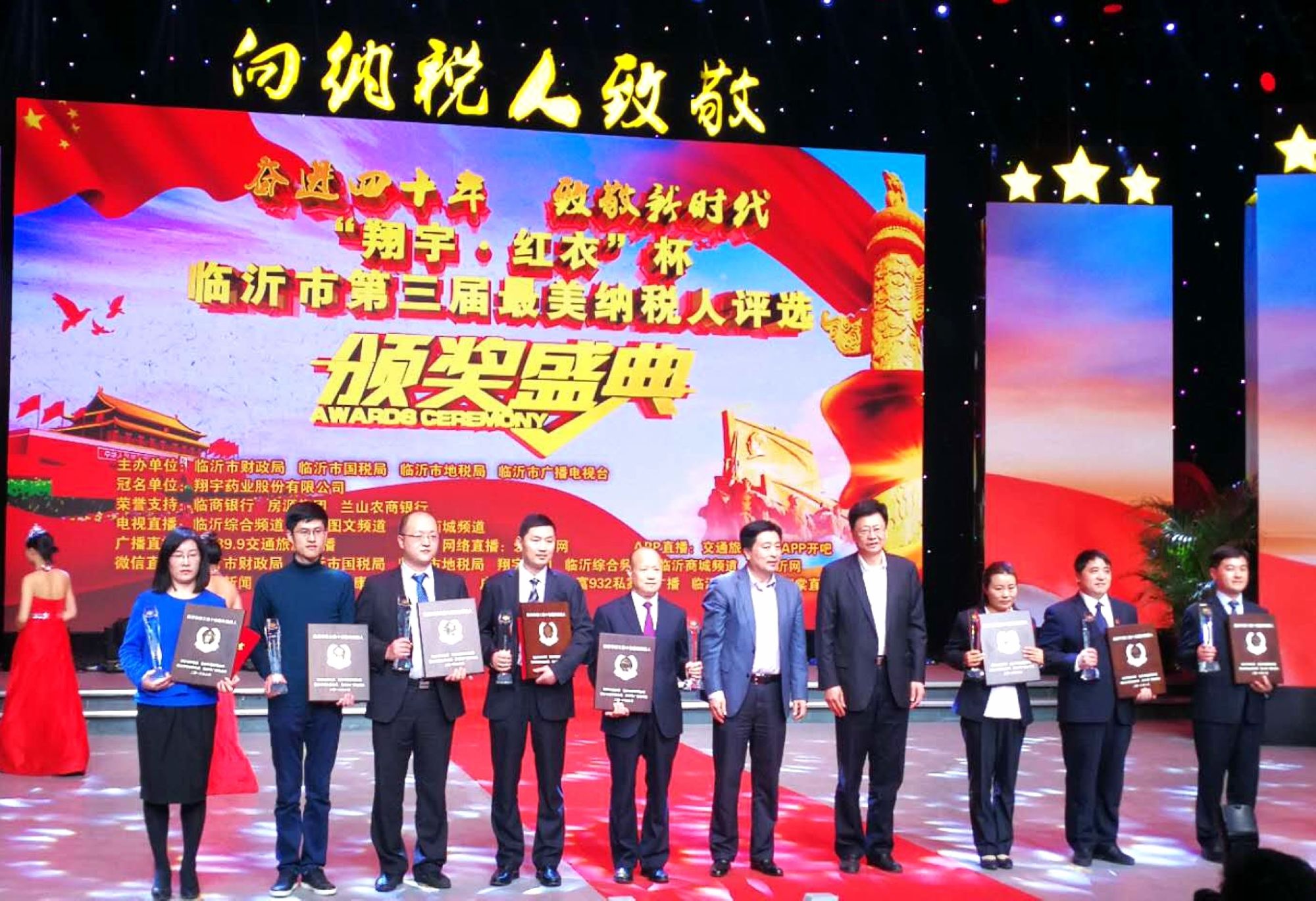 4月28日,臨沂市第三屆“最美納稅人”頒獎盛典在臨沂廣播電視臺隆重舉行。九州集團再次被評為臨沂市“十佳最美納稅人”,集團已連續(xù)三屆被評為臨沂市“十佳最美納稅人”。集團黨委書記王楠楠出席頒獎盛典并領取獎牌和證書。 本次評選活動由市財政局、市國家稅務局、市地方稅務局和市廣播電視臺聯(lián)合主辦,旨在全社會營造“依法誠信納稅、共建和諧社會”的良好氛圍;顒幼2017年4月份啟動,經(jīng)各級層層篩選,確定了218戶“最美納稅人”候選人,活動組委會通過發(fā)布公告、推薦產(chǎn)生候選納稅人、候選納稅人事跡展播、公眾微信投票、專家評審、征求相關部門意見等環(huán)節(jié)最終評選出全市60家企業(yè)為臨沂市第三屆“最美納稅人”,10家企業(yè)為臨沂市第三屆“十佳最美納稅人”。 多年來,九州集團始終秉承“敬業(yè)報國、奉獻社會”的發(fā)展理念,誠信經(jīng)營,依法納稅,主動承擔社會責任,努力加快新舊動能轉換,為建設新時代“大美新”臨沂做出了積極貢獻。(集團辦公室)