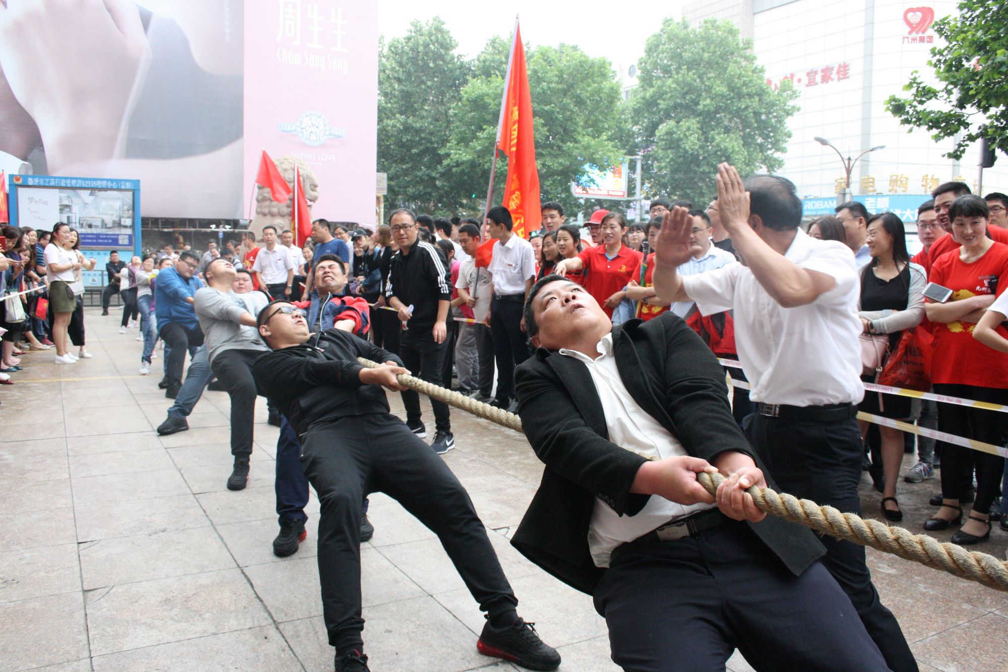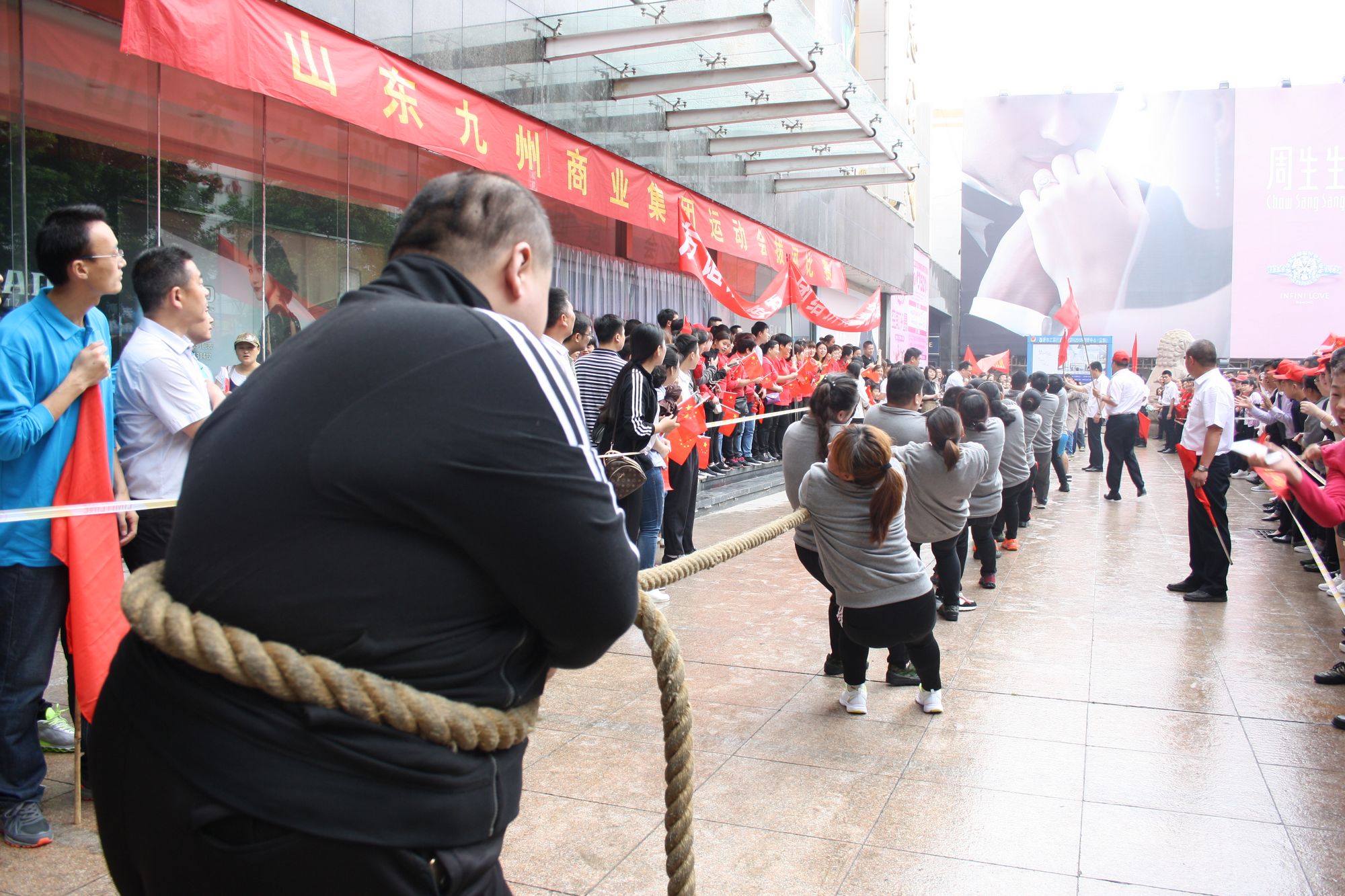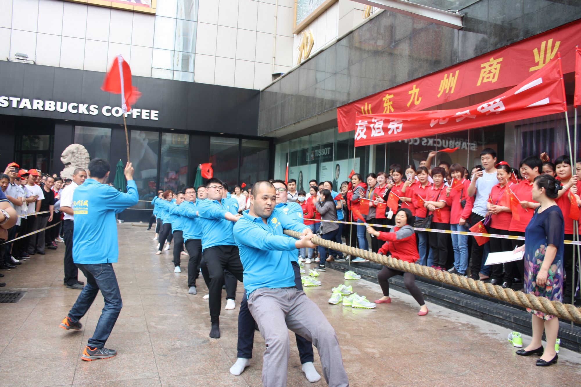5月17日上午七點(diǎn),九州集團(tuán)2018年運(yùn)動(dòng)會(huì)拔河比賽項(xiàng)目伴著激昂的音樂(lè)在九州大廈解放路店廣場(chǎng)拉開(kāi)帷幕。來(lái)自各單位和集團(tuán)行政的六支代表隊(duì)共計(jì) 108人參加比賽。 來(lái)自各單位和集團(tuán)行政的六支代表隊(duì),已經(jīng)準(zhǔn)備就緒,蓄勢(shì)待發(fā)。一聲哨響,兩隊(duì)展開(kāi)激烈的爭(zhēng)奪,加油聲、鼓勁聲、歡呼聲此起彼伏,你爭(zhēng)我?jiàn)Z,你上我下,一片昂揚(yáng)氣氛。這是一場(chǎng)勢(shì)均力敵的較量,兩隊(duì)的比賽已經(jīng)進(jìn)入膠著狀態(tài),緊張激烈的現(xiàn)場(chǎng)氣氛將整個(gè)比賽推向了高潮;這是一場(chǎng)實(shí)力懸殊的戰(zhàn)斗,在不甘示弱的團(tuán)隊(duì)爭(zhēng)奪中,永不放棄,勢(shì)要賽出團(tuán)隊(duì)的風(fēng)采和精神。經(jīng)過(guò)激烈的角逐,來(lái)自臨沂賓館的代表隊(duì)眾望所歸奪得桂冠,九州大廈代表隊(duì)、汽貿(mào)公司代表隊(duì)分獲二、三名,九州宜家佳代表隊(duì)、超市公司代表隊(duì)、集團(tuán)行政代表隊(duì)分獲四至六名。 拔河比賽是九州集團(tuán)運(yùn)動(dòng)會(huì)上延續(xù)多年的比賽項(xiàng)目,一年又一年的榮譽(yù)爭(zhēng)奪,承載著九州人團(tuán)結(jié)一心、頑強(qiáng)拼搏的信念堅(jiān)持;展現(xiàn)著九州人昂揚(yáng)向上、積極進(jìn)取的精神風(fēng)貌。(集團(tuán)辦公室 劉傳芳)
