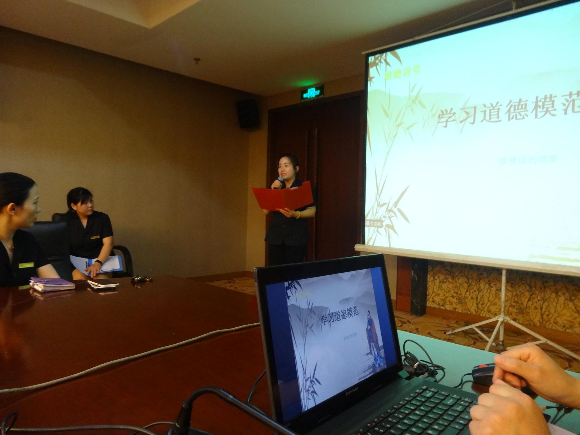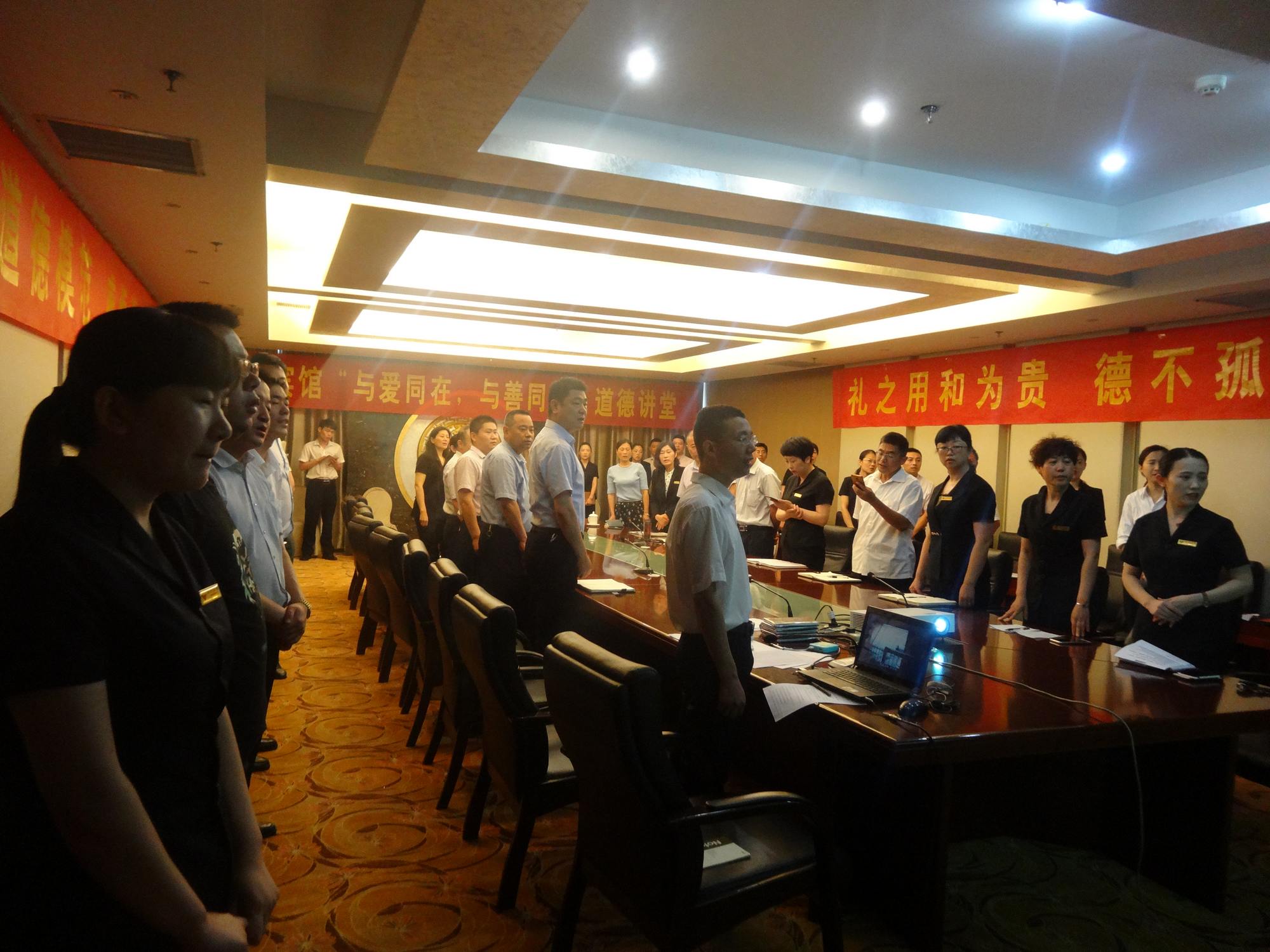 6月22日,臨沂賓館“與愛(ài)同在,與善同行”道德講堂在沂蒙路店第三會(huì)議室成功舉辦,臨沂賓館全體黨員、入黨積極分子及中層管理人員等50余人參加。 山東是孔孟故里,禮儀之邦,道德傳統(tǒng)源遠(yuǎn)流長(zhǎng),“善”是儒家文化的一個(gè)重要組成部分,臨沂賓館本期道德講堂突出“善良”這一中華民族傳統(tǒng)品德的重要權(quán)重,讓更多的人從自己做起、從身邊的小事做起,踐行善舉,傳播“崇德行善”的正能量。 本期道德講堂分為同唱道德歌曲、學(xué)習(xí)道德模范、誦讀中華經(jīng)典、談感悟發(fā)善心、行崇德禮等五個(gè)環(huán)節(jié)。本期學(xué)習(xí)的道德模范是2017年度感動(dòng)中國(guó)十大人物之一黃大年,其愛(ài)崗敬業(yè)、至誠(chéng)報(bào)國(guó)的高尚品質(zhì)讓在場(chǎng)的人感動(dòng)。然后,由臨沂賓館三名員工講述了發(fā)生在我們身邊的凡人善舉,其中沂蒙路店孫曉穎講述的是《身邊的好人——曹玉軍》,大學(xué)酒店肖瑤講述的是《愛(ài)心再接力,溫情暖人心》,開(kāi)發(fā)區(qū)店孟靈芝講述的是《讓我們?cè)賹W(xué)張記磊》,從身邊小事中折射出的善良光輝給予了在場(chǎng)的每一個(gè)人極大的感染。誦讀中華經(jīng)典環(huán)節(jié),選取《論語(yǔ)》中的名句“禮之用和為貴,德不孤必有鄰”,讓大家共同感受到了儒家文化中對(duì)于道德的篤信推崇。唱過(guò)道德歌、看過(guò)道德視頻、聽(tīng)過(guò)道德故事、誦讀了中華經(jīng)典,大家感悟良多并進(jìn)行了分享,也收獲了一份小禮品。最后,在行崇德禮之后,本期道德講堂圓滿結(jié)束。 本期道德講堂的成功舉辦,在弘揚(yáng)中華民族傳統(tǒng)文化中的“善”文化的同時(shí),讓每一位參與其中的人在潛移默化中感受到道德的力量,并以發(fā)生在我們身邊的好人好事為典型,呼吁更多的人參與到“發(fā)善心,行善舉”的行動(dòng)中,傳遞社會(huì)正能量,為我市創(chuàng)建全國(guó)文明城市營(yíng)造濃厚氛圍。(臨沂賓館 王本強(qiáng))