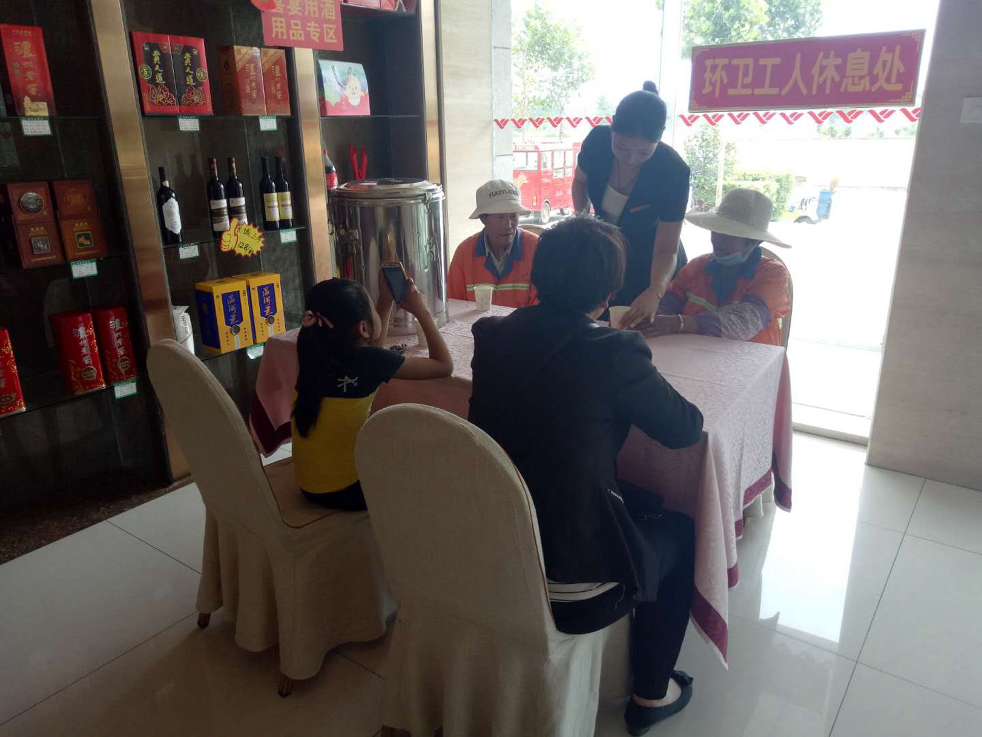 炎炎夏日,酷暑來襲,連日來的高溫天氣將整座城市迅速帶入“燒烤”模式。人們都在舒適納涼的時候,卻有那么一群人,他們頂著似火的驕陽,穿梭在在城市的大街小巷,揮汗如雨,為城市的美顏“打扮梳妝”,他們就是被稱為“城市美容師”的環(huán)衛(wèi)工人。當(dāng)我們享受舒適衛(wèi)生的環(huán)境時,是環(huán)衛(wèi)工人們的默默奉獻為我們的美好生活提供了保障,正是因為有了他們的辛苦付出,我們生活的城市才會變得更加美麗。 為給辛勤付出的環(huán)衛(wèi)工人們送去一份清涼和慰藉,助力臨沂市文明城市建設(shè)、衛(wèi)生城市復(fù)審工作,臨沂賓館在各分店分別設(shè)立“環(huán)衛(wèi)工人休息處”,并免費提供茶水、綠豆湯等,供環(huán)衛(wèi)工人們納涼歇腳,為高溫酷暑下仍堅守崗位的“馬路天使”們帶來清涼和關(guān)懷。 臨沂賓館作為臨沂市知名酒店品牌,多年來始終秉承著九州集團“敬業(yè)報國,奉獻社會”的理念,在發(fā)展的同時不忘回報社會,用實際行動感恩著每一位支持者,用暖心善舉傳遞著大愛的正能量,為我市的文明城市建設(shè)、衛(wèi)生城市復(fù)審貢獻一份力量。(臨沂賓館 王本強)