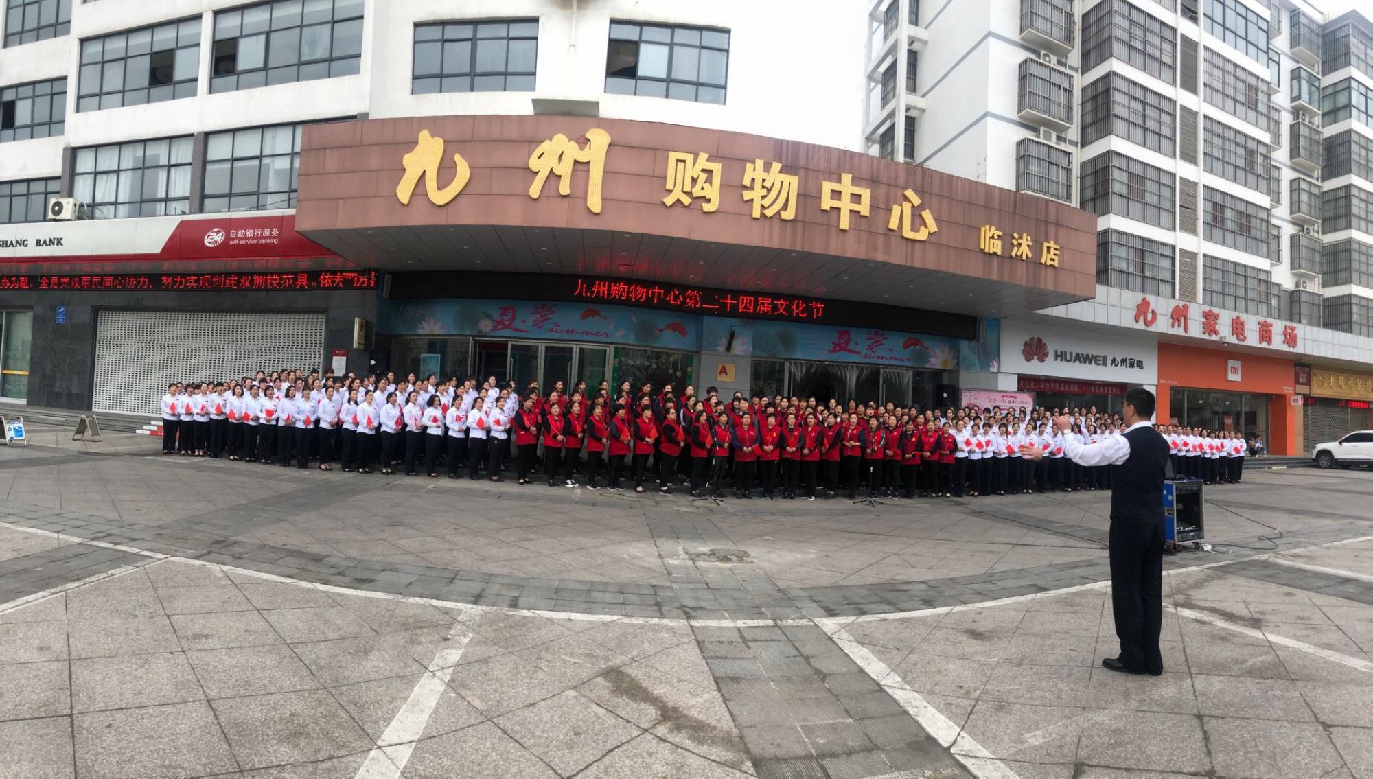 5月18日上午,九州大廈臨沭店在門前廣場舉行歌詠比賽。一大早,全體員工按照要求統(tǒng)一著裝,畫著精致的淡妝在門前廣場集合,為即將開始的比賽做最后的排練。主持人認(rèn)真的背著主持詞,一遍一遍重復(fù)練習(xí)。 伴隨著《九州集團(tuán)之歌》的音樂,比賽正式拉開了帷幕,首先是臨沭店百貨一部給大家?guī)淼摹洞笾袊罚又前儇浂康摹稅畚抑腥A》,最后超市壓軸帶來了《歌唱祖國》。唱到最后,全體員工一起加入進(jìn)來,齊聲高歌,洪亮的歌聲引來了路人的駐足圍觀;顒拥拈_展展現(xiàn)了九州人積極向上的精神風(fēng)貌,樹立了良好的企業(yè)形象。(文圖/吳淑芳)