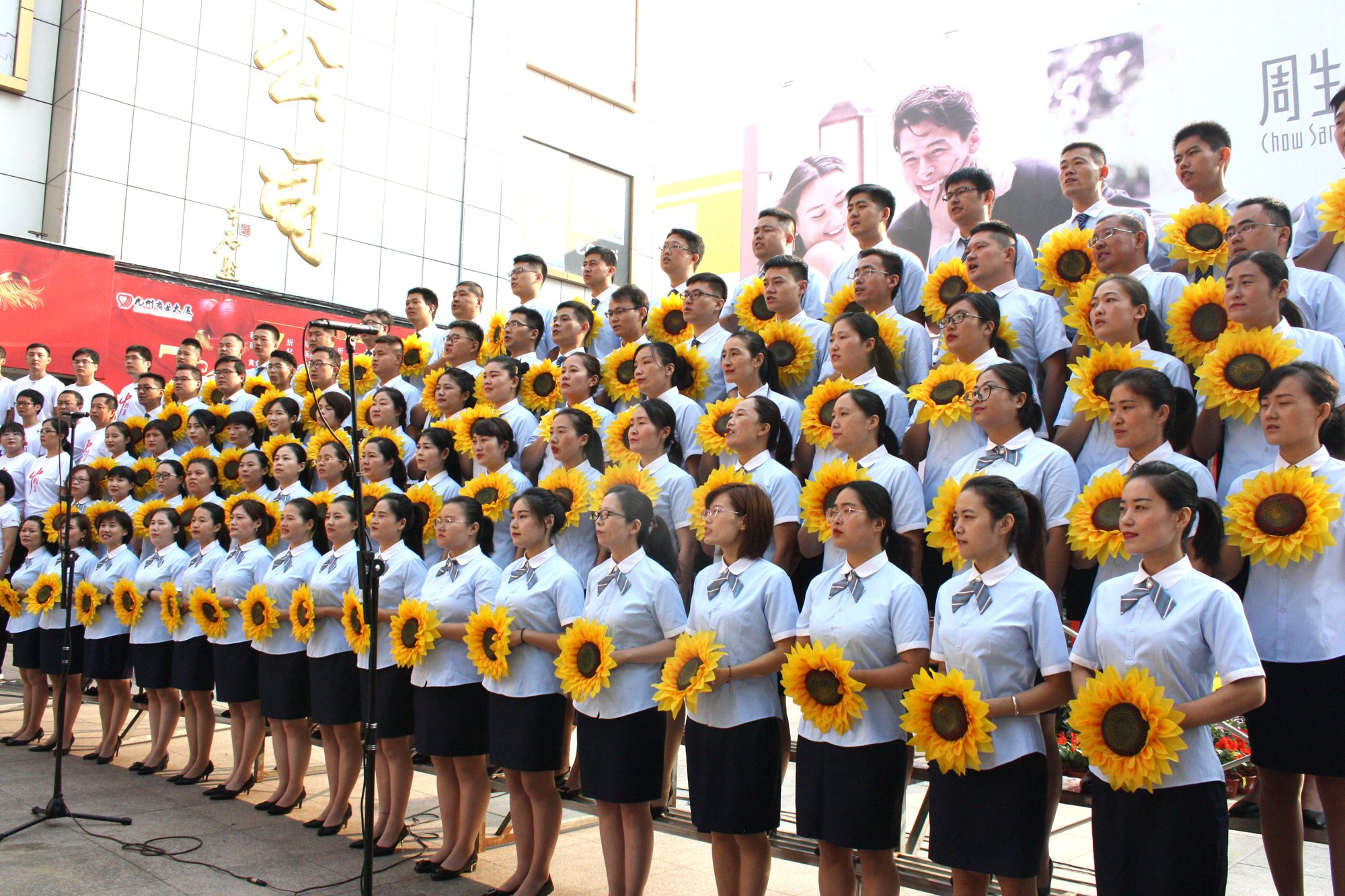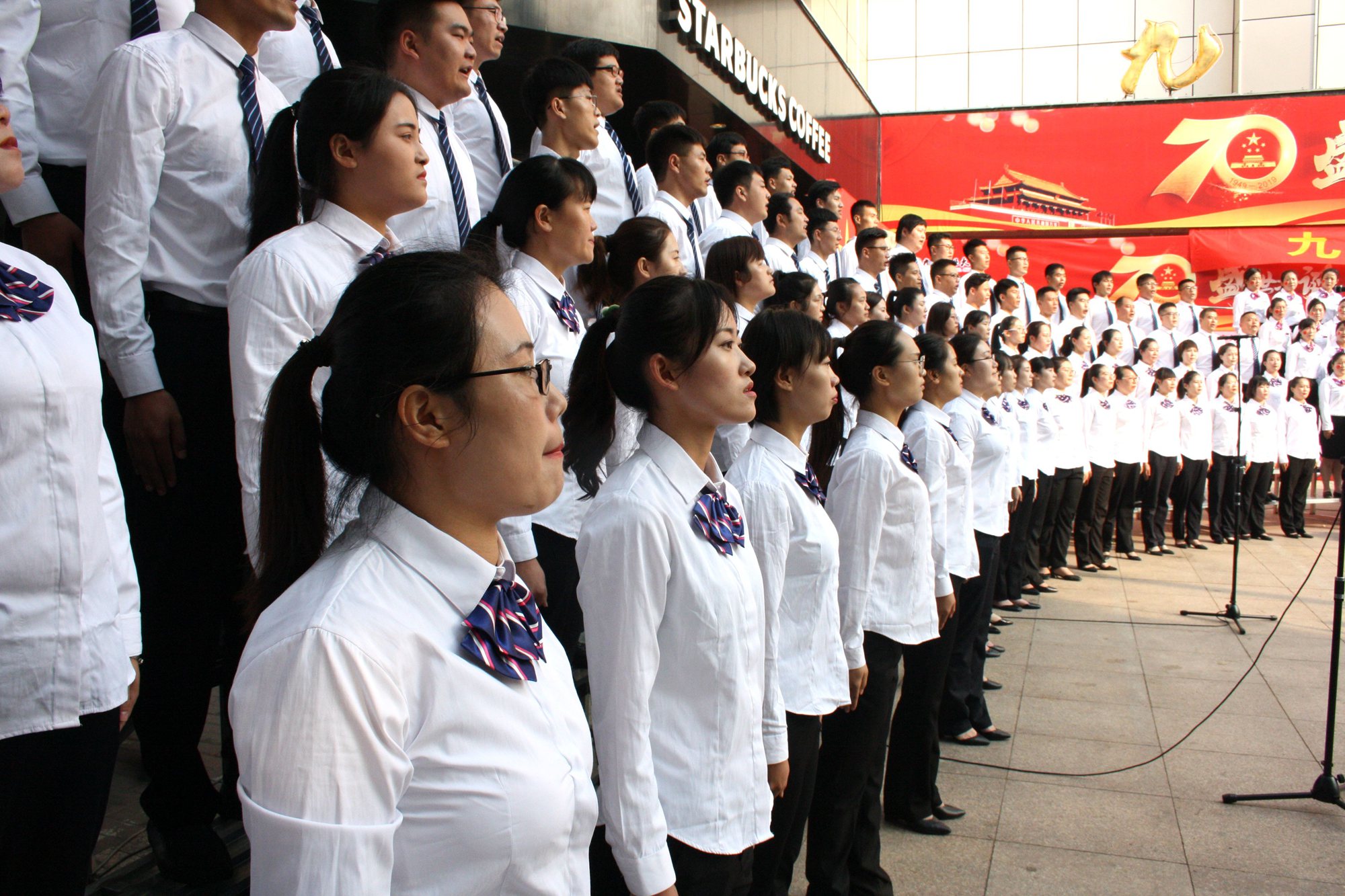 躬逢新時(shí)代,頌歌獻(xiàn)祖國。9月30日早上,集團(tuán)在九州商業(yè)大廈門前廣場舉辦慶祝新中國成立70周年歌詠比賽,來自各經(jīng)營單位和集團(tuán)行政處室的六支代表隊(duì)共計(jì)450余人參加了比賽。 余音繞梁,群情激昂,或雄壯,或深情,或火熱,或沉醉,六支代表隊(duì)用動聽的歌聲直抒對祖國的滿腔熱愛,展現(xiàn)新時(shí)代九州人深厚的愛國情懷。“起來,不愿做奴隸的人們,把我們的血肉筑成我們新的長城……”比賽伊始,舉行升國旗儀式,伴隨著緩緩升起的五星紅旗,六支代表隊(duì)齊唱國歌,斗志昂揚(yáng)。隨后,全體大合唱《九州集團(tuán)之歌》更加彰顯了九州員工蓬勃向上、意氣風(fēng)發(fā)的精神風(fēng)貌。本次比賽,每支代表隊(duì)演唱兩首參賽曲目,以歌詠志、以歌抒懷!蹲鎳灐贰段液臀业淖鎳贰侗Pl(wèi)黃河》《大中國》《沒有共產(chǎn)黨就沒有新中國》《歌唱祖國》《不忘初心》《我愛你中國》《祖國不會忘記》《愛我中華》等一首首膾炙人口的歌曲陸續(xù)唱響,唱出了九州人對祖國母親的無限熱愛和美好祝福。嘹亮的歌聲在現(xiàn)場久久回蕩,吸引了越來越多的行人駐足觀看,現(xiàn)場響起一陣又一陣的掌聲。比賽的最后,所有參賽隊(duì)員及現(xiàn)場觀眾在指揮老師的統(tǒng)一指揮下,共同唱響《歌唱祖國》,“五星紅旗迎風(fēng)飄揚(yáng),勝利歌聲多么嘹亮,歌唱我們親愛的祖國,從今走向繁榮富強(qiáng)……”熟悉的旋律伴隨著飄揚(yáng)的五星紅旗,將現(xiàn)場的氣氛推向高潮,本次比賽圓滿落下帷幕。 同唱愛國歌,共筑九州夢。當(dāng)下,九州人將青春與熱血融入旋律,將情懷與夢想融入歌聲,獻(xiàn)禮祖國。而今后,九州人將繼續(xù)緊隨偉大祖國發(fā)展步伐,不忘初心,砥礪奮進(jìn),再創(chuàng)事業(yè)新輝煌。(文/劉文靜)