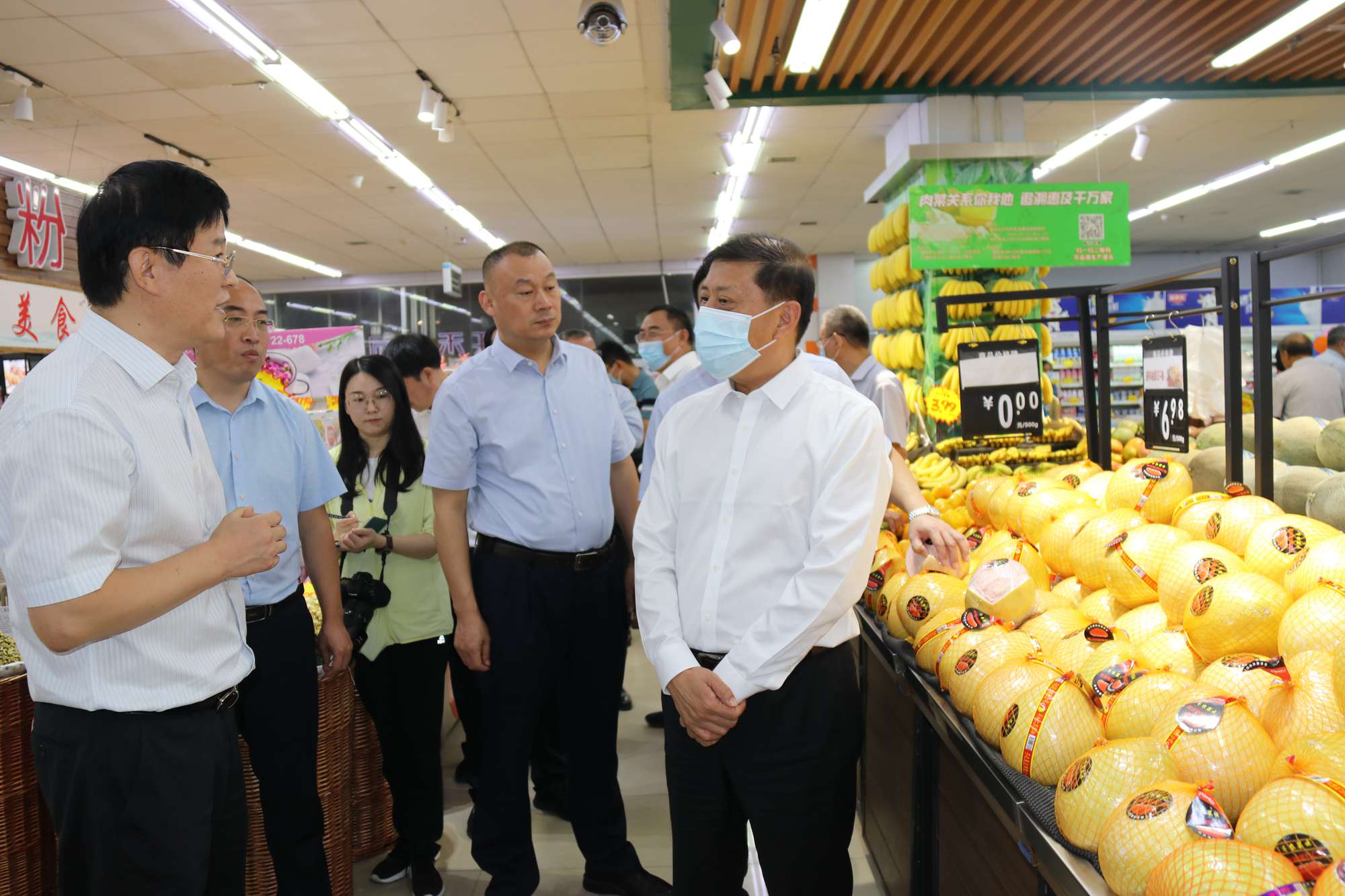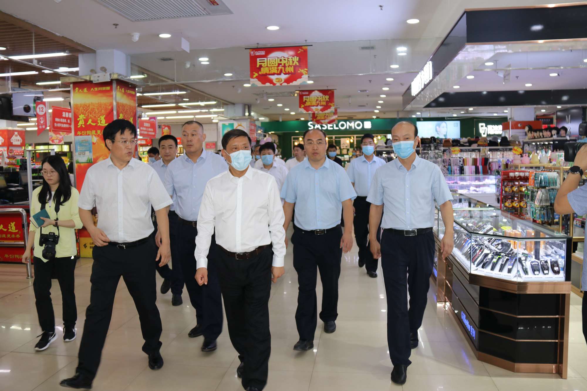 9月29日上午,臨沂市委書記王安德到九州購物中心齊魯園店檢查節(jié)日食品安全工作。副市長劉賢軍,市商務局黨組書記、局長張洪永,市市場監(jiān)督管理局黨組書記、局長黃杰陪同。集團董事長、總經(jīng)理楊永東,超市公司總經(jīng)理李國等參加活動并匯報工作。
