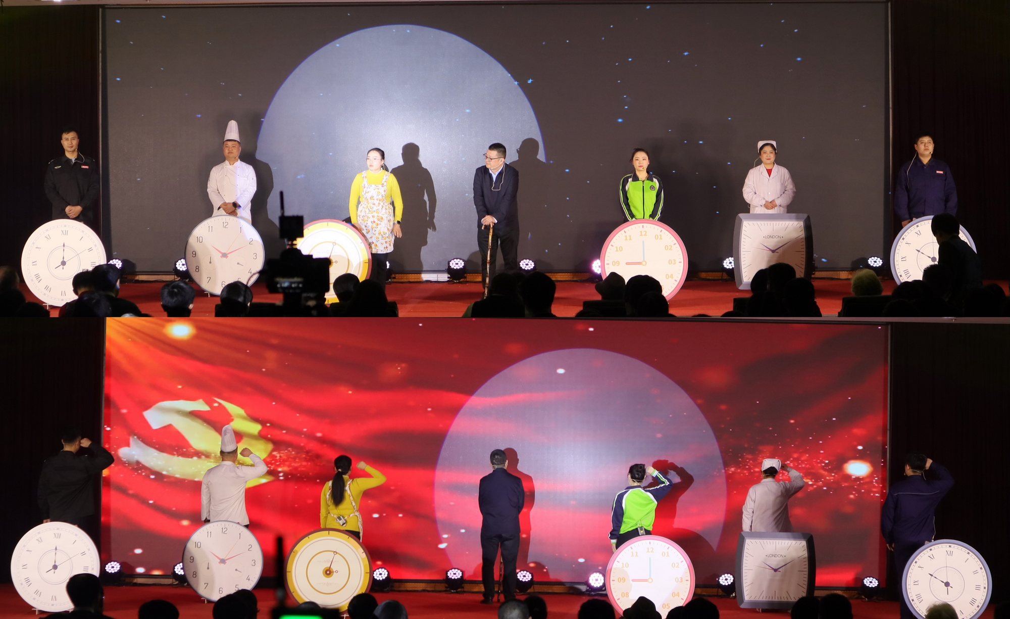 本場晚會的成功舉辦,離不開臺上演出人員的精彩表演,也離不開臺前幕后工作人員的付出;演員們在不影響本職工作的前提下反復(fù)訓(xùn)練、多次彩排,不斷磨合、力求最優(yōu),只為在舞臺上將最好的狀態(tài)和最出色的表演呈現(xiàn)在大家面前;總指揮、總監(jiān)制、節(jié)目創(chuàng)作、節(jié)目編排、會場服務(wù)保障、設(shè)備、錄像、燈光、音響等所有臺前幕后的工作人員,一次次召開會議商討晚會的每一個細(xì)節(jié),相互之間通力合作為這場晚會保駕護航,臺下的掌聲和直播間破56萬的點贊數(shù),是對他們辛勤付出的最大支持和鼓勵。