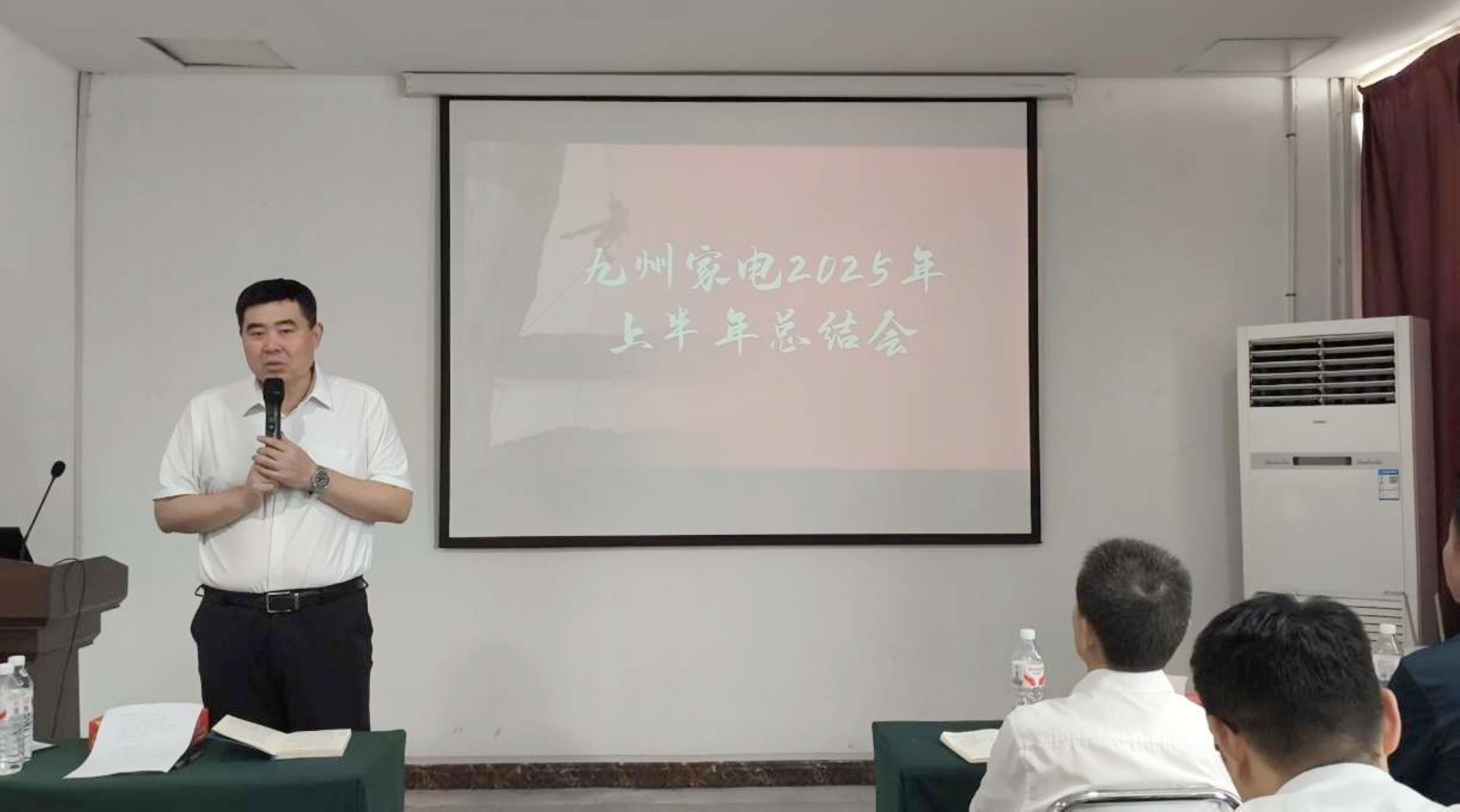 7月29日上午,九州家電2025年上半年工作總結(jié)會議在九州家電解放路店二樓會議室舉行,主管及以上管理人員共60余人參加。