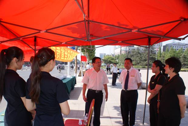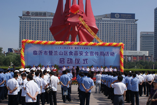 2011年6月13日,在《中華人民共和國(guó)食品安全法》頒布實(shí)施二周年之際,臨沂市食品安全協(xié)調(diào)委員會(huì)和蘭山區(qū)人民政府在人民廣場(chǎng)聯(lián)合舉辦“人人關(guān)心食品安全,家家享受健康生活”為主題的“臨沂市暨蘭山區(qū)食品安全宣傳周活動(dòng)啟動(dòng)儀式”。市人民政府副市長(zhǎng)王曉?和市直、區(qū)直相關(guān)職能管理部門(mén)領(lǐng)導(dǎo)參加了啟動(dòng)儀式。 臨沂賓館十分重視此次活動(dòng),支部季書(shū)記親自帶隊(duì),在廣場(chǎng)東側(cè)設(shè)立“臨沂賓館食品安全宣傳站”,向市民分發(fā)食品安全的宣傳資料和介紹臨沂賓館有機(jī)食品的相關(guān)知識(shí),受到與會(huì)領(lǐng)導(dǎo)的表?yè)P(yáng)和廣大市民的歡迎。