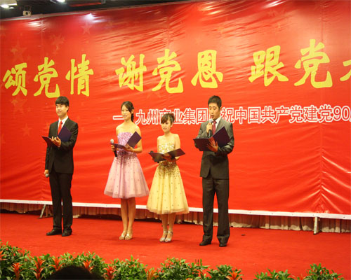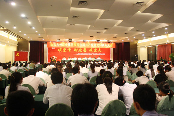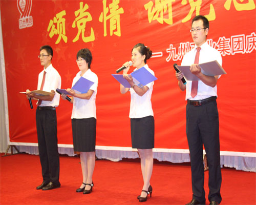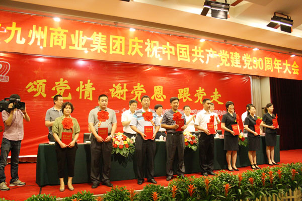 在舉國上下喜迎中國共產(chǎn)黨建黨90周年之際,集團黨委于6月28日在臨沂賓館舉行慶祝中國共產(chǎn)黨建黨九十周年大會暨“頌黨情 謝黨恩 跟黨走”紅歌會。 董事長楊沂城同志宣讀《關于表彰2010年度先進黨支部和優(yōu)秀共產(chǎn)黨員的決定》,黨委書記王佐文同志作《中共山東九州商業(yè)集團有限公司委員會2010年度工作報告》,楊永東同志主持大會并帶領新黨員宣誓。 會上,來自集團各部位的43名優(yōu)秀共產(chǎn)黨員和九州大廈黨支部、連鎖超市黨支部兩個黨支部受到表彰。九州大廈楊翔飛同志、超市公司杜立勇同志分別代表先進黨支部和優(yōu)秀共產(chǎn)黨員發(fā)言。隨后,全體黨員一起觀看了“頌黨情 謝黨恩 跟黨走”大型紅歌會。