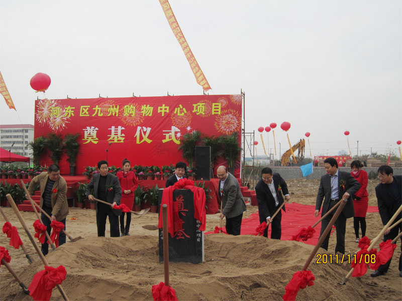 11月8日,河?xùn)|區(qū)九州購(gòu)物中心項(xiàng)目在河?xùn)|臨空經(jīng)濟(jì)區(qū)舉行奠基儀式,臨沂市、河?xùn)|區(qū)領(lǐng)導(dǎo)及市直有關(guān)部門負(fù)責(zé)人出席奠基儀式。集團(tuán)楊永東出席奠基儀式。 九州購(gòu)物中心項(xiàng)目位于臨空經(jīng)濟(jì)區(qū),占地45畝,建筑面積6.5萬(wàn)平方米。該項(xiàng)目建成后將成為集超市、酒店、餐飲娛樂為一體的綜合性購(gòu)物中心。
