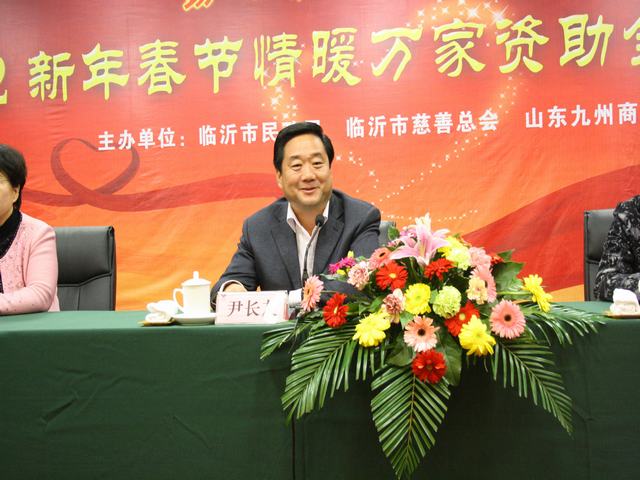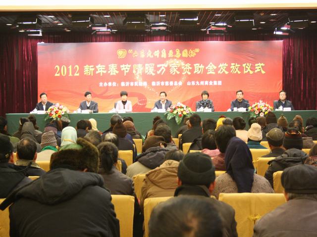 1月14日,春節(jié)來臨之際,由集團公司與臨沂市民政局、臨沂市慈善總會聯(lián)合主辦的“九州集團杯” 2012年新年春節(jié)慈善資助金發(fā)放儀式在臨沂賓館大學酒店舉行。市委常委尹長友、市人大常委會副主任馮安、市政協(xié)副主席趙愛華、市民政局局長姜新利、市慈善辦主任李長征,集團領(lǐng)導王佐文、楊永東出席資助金發(fā)放儀式。 活動現(xiàn)場,市領(lǐng)導與集團領(lǐng)導為來自全市的400個困難家庭,發(fā)放了40萬救助金。