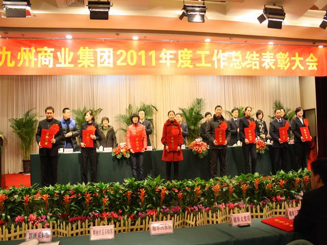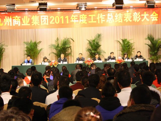 1月30日,集團(tuán)2011年度工作總結(jié)表彰大會(huì)在臨沂賓館舉行,會(huì)議總結(jié)了2011年度集團(tuán)各項(xiàng)工作,表彰了一年來涌現(xiàn)出來的先進(jìn)集體和個(gè)人,并對(duì)2012年工作計(jì)劃進(jìn)行了部署安排。董事長楊沂城主持會(huì)議并作重要講話,黨委書記王佐文宣讀表彰決定,楊永東作《山東九州商業(yè)集團(tuán)2011年度工作報(bào)告》。受到表彰的先進(jìn)集體和個(gè)人及干部職工代表400余人參加會(huì)議。 工作報(bào)告從經(jīng)營、管理、文明建設(shè)三個(gè)方面回顧了集團(tuán)過去一年取得的成績并給予肯定,并指出了經(jīng)營管理中存在的問題。會(huì)上還對(duì)集團(tuán)一年來涌現(xiàn)出的29個(gè)先進(jìn)集體,兩個(gè)突出貢獻(xiàn)部位,一名勞動(dòng)模范,一名創(chuàng)新工作能手,27名崗位標(biāo)兵,52名優(yōu)秀管理人員和1085名先進(jìn)工作者進(jìn)行了表彰。汽貿(mào)公司副總經(jīng)理、順通長城4S店經(jīng)理曲邦恒,超市公司苗莊店生鮮主管張興峰分別代表先進(jìn)集體和先進(jìn)個(gè)人發(fā)言。 會(huì)議要求,集團(tuán)廣大干部職工要以先進(jìn)為榜樣,大力弘揚(yáng)企業(yè)精神,團(tuán)結(jié)一心、拼搏奉獻(xiàn),努力完成2012年度各項(xiàng)經(jīng)營指標(biāo)。