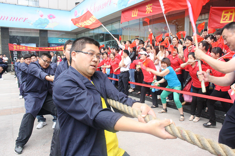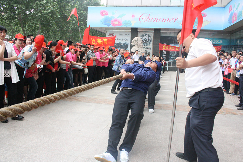 5月23日上午,集團(tuán)運(yùn)動(dòng)會(huì)拔河比賽項(xiàng)目在九州商業(yè)大廈門前廣場(chǎng)舉行,超市公司、九州大廈、臨沂賓館、九州宜家佳、九州汽貿(mào)等五支代表隊(duì)參加比賽。經(jīng)過激烈角逐,超市公司成功衛(wèi)冕,臨沂賓館、九州宜家佳分獲二、三名。比賽現(xiàn)場(chǎng),廣大員工展現(xiàn)出了積極向上、團(tuán)結(jié)拼搏的良好精神風(fēng)貌。 拔河比賽項(xiàng)目的舉行,拉開了集團(tuán)運(yùn)動(dòng)會(huì)的序幕。運(yùn)動(dòng)會(huì)上各單位都精心準(zhǔn)備了豐富多彩的比賽項(xiàng)目,豐富員工生活,鍛煉員工體魄,促進(jìn)交流溝通。