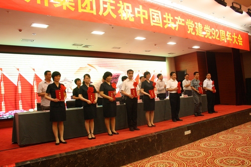 6月28日,集團慶祝中國共產(chǎn)黨建黨92周年大會在臨沂賓館召開。會議總結(jié)工作,表彰先進,安排部署2013年度集團黨建工作。黨委書記王佐文作黨委工作報告,董事長楊沂城宣讀表彰決定,楊永東主持會議。黨委委員出席會議。全體黨員參加大會。